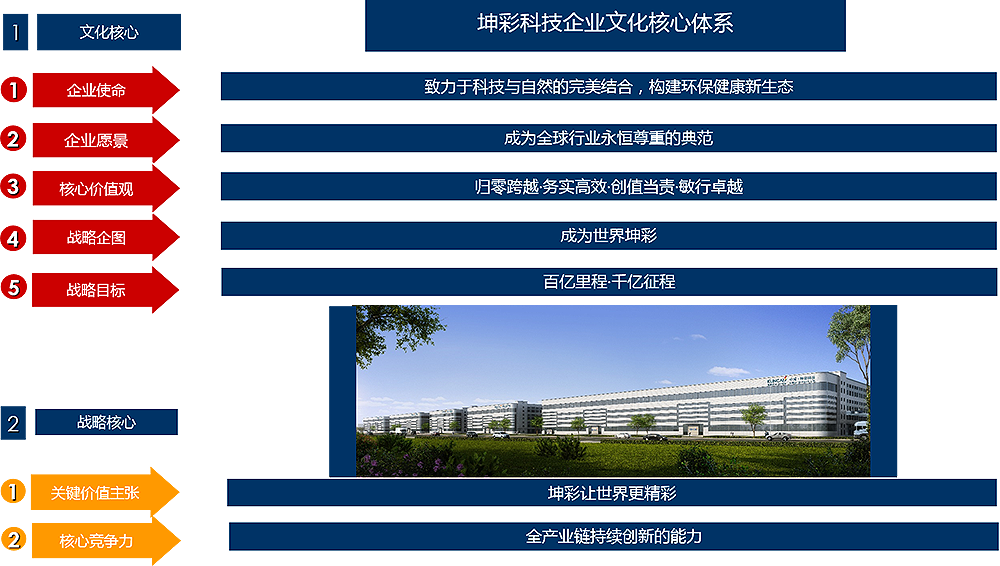 归零跨越:归零,再出发,每天都是新起点;跨越,新挑战,每天都有新蓝图。坤彩不管取得了多大的成绩,我们都不会在此止步,过去已经成为历史,坤彩将承前启后,引领未来,在研发领域不断寻求新的突破,打造全产业链持续创新的核心竞争力。