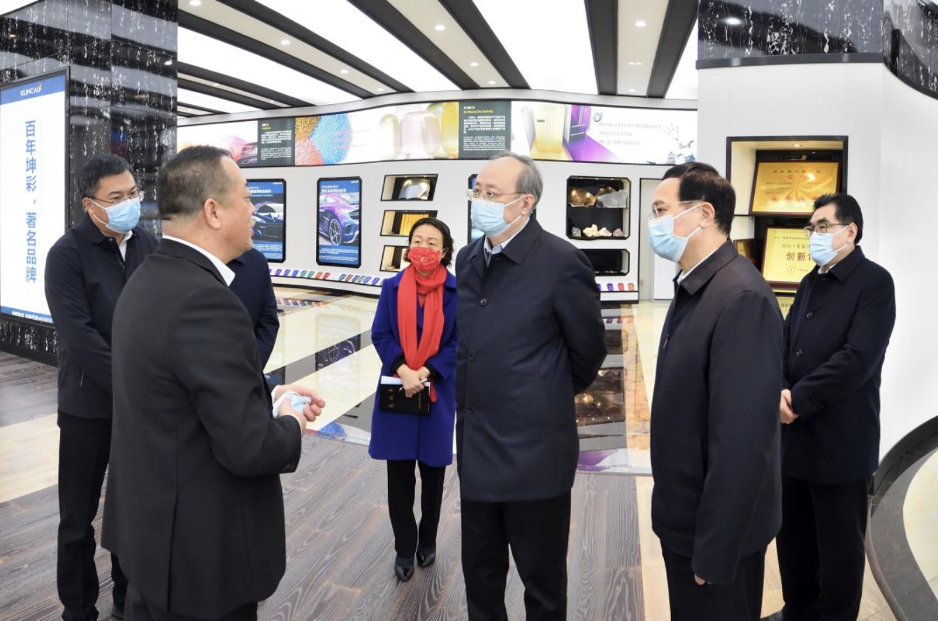 2月9日,福建省委书记尹力同志、常务副省长郭宁宁女士等省领导一行,在福州市委书记林宝金,福清市委书记叶仁佑陪同下,参观了开云app登录入口展厅和生产车间。开云app登录入口谢秉坤汇报了公司发展情况,尹力书记充分肯定了我司坚持走创新发展并创造了全球首套以萃取法生产钛白粉工艺十分自豪,鼓励企业着重于战略发展,延伸产业链,提高全球核心竞争力,发挥首套技术优势,做大做强企业,以更高层面更大力度协调好四川攀枝花钛精矿项目开发合作,利用各地资源禀赋差异,充分发挥各自优势合作共赢,构建国内国际双循环。为我省供应链稳定和产业链延伸做好坚定保障。
