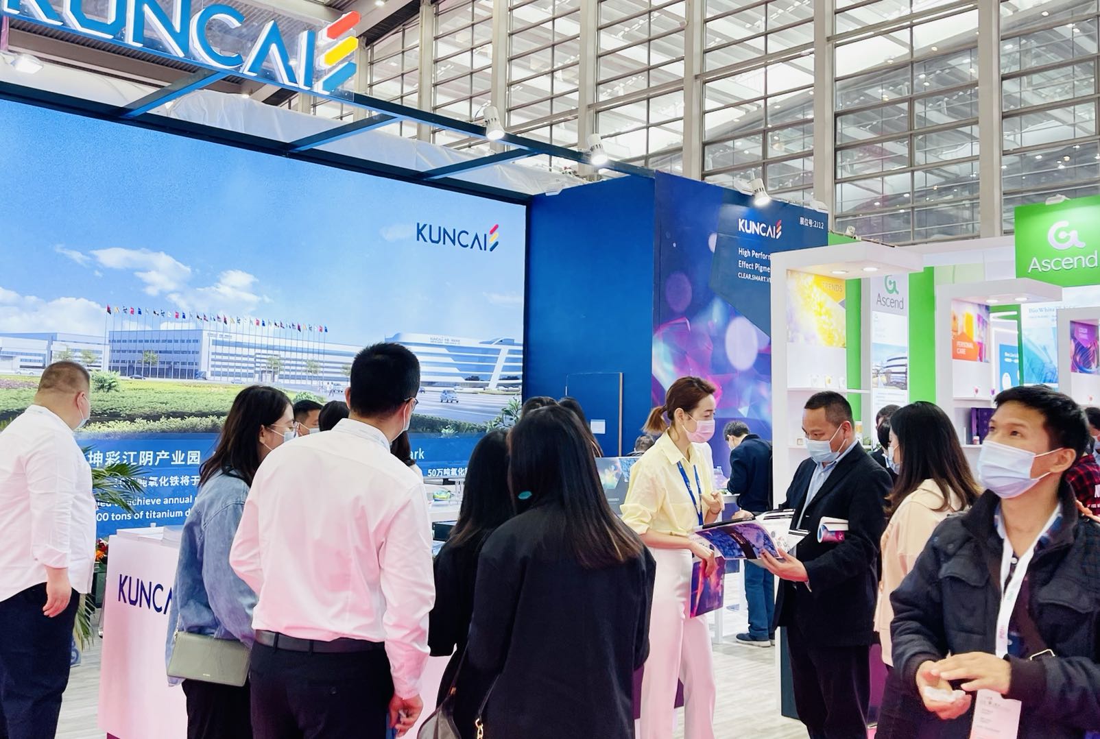 此次展会开云app登录入口携高端产品亮相展会现场,期中全新极光紫系列作为首次展示吸引广大参展观众的目光。COSMI-818V暮色玫瑰以及COSMI-819V罗兰紫采用全新工艺,填补了不含有机色素和胭脂红的高色彩饱和度的艳丽玫瑰红化妆品级珠光粉市场空白,丰富了坤彩化妆品级珠光产品。此外,采用全球首套盐酸萃取法工艺生产年产五十万吨氯化钛白及五十万吨氧化铁项目也备受行业的关注。